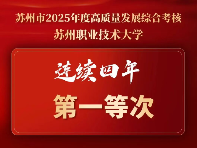 2月24日,苏州市2025年度高质量发展总结暨作风建设大会召开,会议通报了全市2025年度高质量发展综合考核结果,我校再度斩获市属高(职)院校组第一等次,实现四年蝉联,以硬核职教实力交出服务地方高质量发展的优异答卷。校党委书记温贻芳出席会议并在会后接受苏州新闻采访。