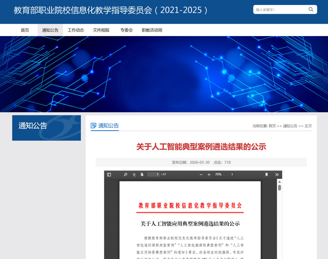 近日,教育部职业院校信息化教学指导委员会公布2026年全国职业院校人工智能系列典型案例遴选结果。我校申报的两个案例成功入选。